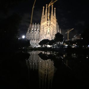 夜のサクラダファミリアも池にきれいに反射した風景とともに、雲にサクラダファミリアの影が映る珍しい景色を見ることができました。ぜひ皆さんにお薦めします。