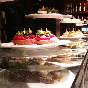 まず、ホテルまでの送迎付きで、夜でも安心です。散策はおまけ程度かと思ったら、1時間くらい旧市街をしっかり歩いて案内してくださいます。また、私の時は、地下鉄、タクシー、バスといろいろな乗り物を体験できたので、次の日から一人で旧市街を歩く時にも、地下鉄に乗る時にも、すごく助かりました。そして、肝心のお店ですが、3軒ともすっごくおいしかったです。各1品ずつとありますが、実際は参加者の人数分の品数をシェアするので、いろいろなタパスを少しずつ食べることができました。少しずつと言っても、品数があるのでおなかいっぱいになります。最後の方は、「こんなにおいしいのにおなかいっぱいで悔しい〜」という状況でした。ガイドさんがいろいろ料理の解説をしてくださるのも興味深かったです。ガイドのKさん、それから、ここをご覧になるかどうかわかりませんが、12/29にこのツアーでご一緒してくださった方々、おかげさまで楽しい夜を過ごせました。本当にありがとうございました。