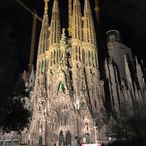 夜のサクラダファミリアもライトアップされていてとても綺麗でした!お昼とまた違った壮大さを感じることができると思います!