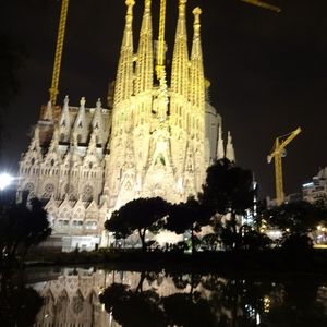 サグラダファミリアの夜景は最高でした!!同じ日の昼間に訪れていましたが、昼の顔とは全然違い、公園の池に映ったサグラダファミリアは美しかったです。