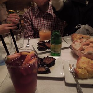 ホテルから日本人ガイドさんと出発。当日は私たち二人だけという事で歩くコースも考慮して下さいました。夕暮れのバルセロナの細い路地などを巡りながら、食べたい物のリクエストも聞いて下さり、私たちのニーズに合わせたお店や料理を選んでもらいました。歩いてバルに立ち寄り食事、また歩いて少しお腹を減らして次のバルへと向かいます。夜の旧市街地は女二人旅の私たちだけでは行けないところでしたが、楽しく散策することが出来ました。お酒の苦手な方でも大丈夫です。飲めない私も一杯だけサングリアに挑戦しました。お料理も美味しく、量も食べきれない位でした。