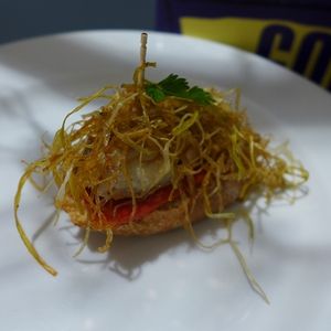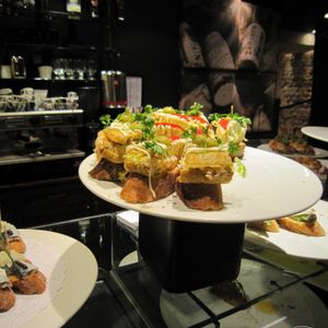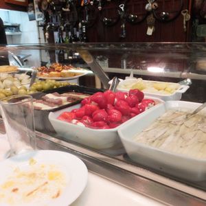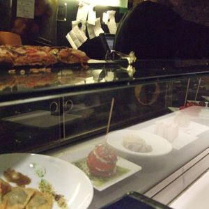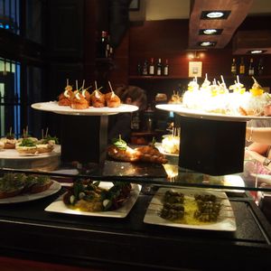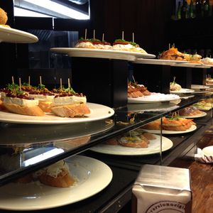 ピンチョスを食べました。カウンターにある好みのピンチョスを自分で選らんで食べられ、人気のあるお店のようでとてもにぎわっていました。