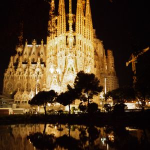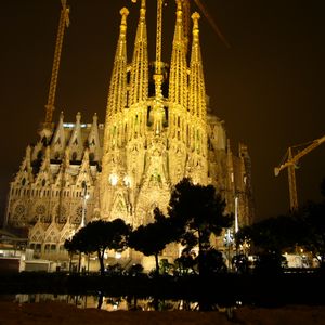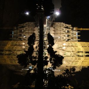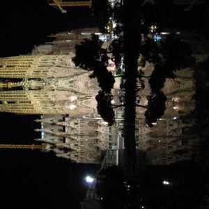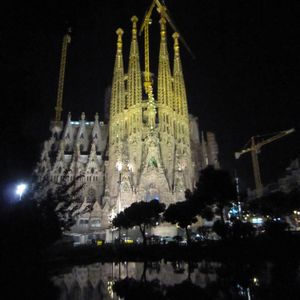 サグラダファミリアの夜景、水に映ったさかさまの夜景も素晴らしく短い滞在時間の中で貴重な体験ができました。
