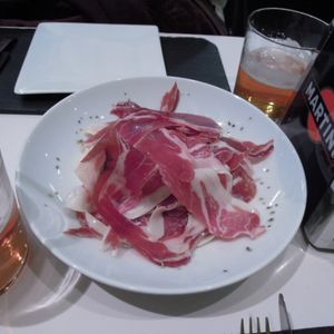 一軒目、ハモン・イベリコ(あまり美味しくなくて残念)とパン・コントマテ等を頂きました。イベリコが残念でしたので、翌日、市場で切り立てのイベリコの生ハムを食べました。大満足でした。