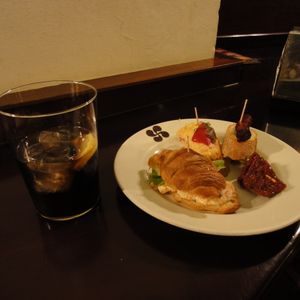 二軒目、ピンチョスとドリンク。サッカーを観戦しながら飲むバル。(サッカーの観戦時期が過ぎ盛り上がりがない状態で・・・残念)