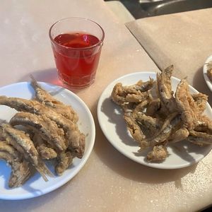イワシのフリットが熱々、サクサクでとても美味しいです。ワインに合います。