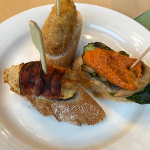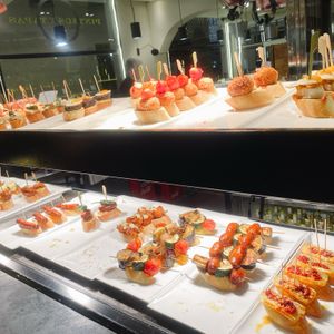 最初はピンチョスバーで好きな3品、次のお店はカタルーニャの名物料理を!人数が多いのでその分品数をたくさん頼めて、みんなで取り分けて、いろいろな料理を楽しめました^ ^その後、バスを乗り継いでサグラダファミリアの夜景を!天気も良かったので最高の素晴らしい景色を堪能。それから、もう一軒。生ハムの美味しいお店に連れて行っていただきました。このツアーは、人数が多い方が皿数が増えるので、いろいろな料理が楽しめてオススメです。ガイドの男性の方のきびきびした対応に安心して着いていけました。有難うございました。
