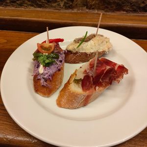 旧市街を散策しながら、2軒目(家族3人で一品ずつ)。また、散策しながら、3件目(生ハムなど)。