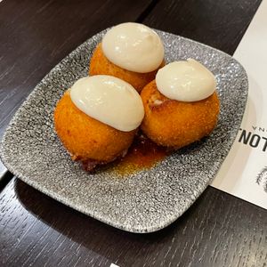 特徴的なバルに連れていってくれました。マッシュルームの鉄板焼き、ミニコロッケ、エビのアヒージョ、どれもおいしかったです。食べながら、マドリードの話や歴史の話をうかがい、楽しかったです。