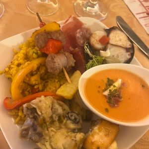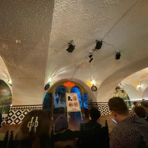 改装中?で場所が違っていた。入口には女性の方が立っていて用紙を見せると時間までは入れないと。地域的に少し怖かったので椅子には座れなくてもいいから少し中に居させてほしかった。食べ物は温かく種類もあったので、色んな味を楽しめた。フラメンコショーはたまたま最前線で拝見できて、その迫力と喜怒哀楽の表情から目が離せませんでした。
