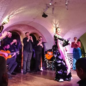 ステージは小さいですがその分観客との距離が近いので臨場感がすごいです。フラメンコは女性おふたりと男性おひとりのダンサーを見れます。踊り以外に歌やギター演奏も堪能できでとても満足!またこのツアーを使いたいです