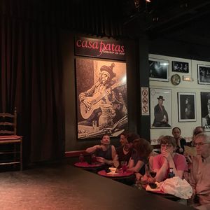とりあえずバルセロナ来たから見とくかみたいなノリでツアーに参加したら本場の熱気とフラメンコや演奏の凄さに圧倒されました。ドリンク付きで勝手にサングリアでしたが(笑) 飲む暇がない程ステージに見入ってました。時間にして1時間ちょっとあったかと思います。始まる前に外で少し待たされますが、早めに行ってお店の前に並んだら横からでしたが最前列の席でした。
