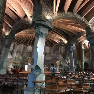 コロニア・グエル開館直後、団体さん入館前にガイドさんが中に入るように言ってくれ、入ってみて納得、誰もいない神聖な教会をみることが出来ました。ガウディのこだわりが近くで感じられ、感動しました。