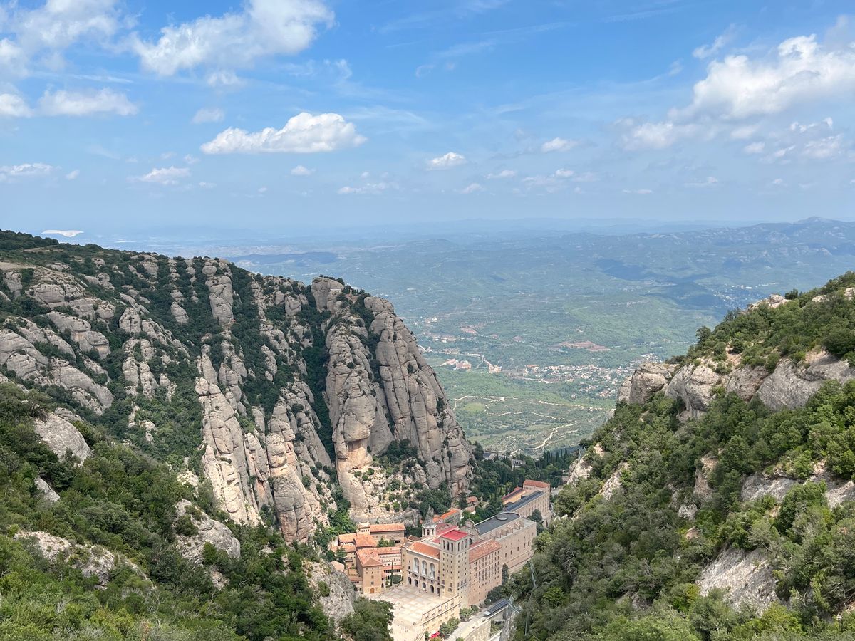 バルセロナ市街から電車、登山鉄道を乗り継いで修道院のあるモンセラットへ向かいました。途中、ガウディ建築のコロニアグエルにも立ち寄りました。どちらも印象深く、ののが訪問スペイン旅行のハイライトとなりました。