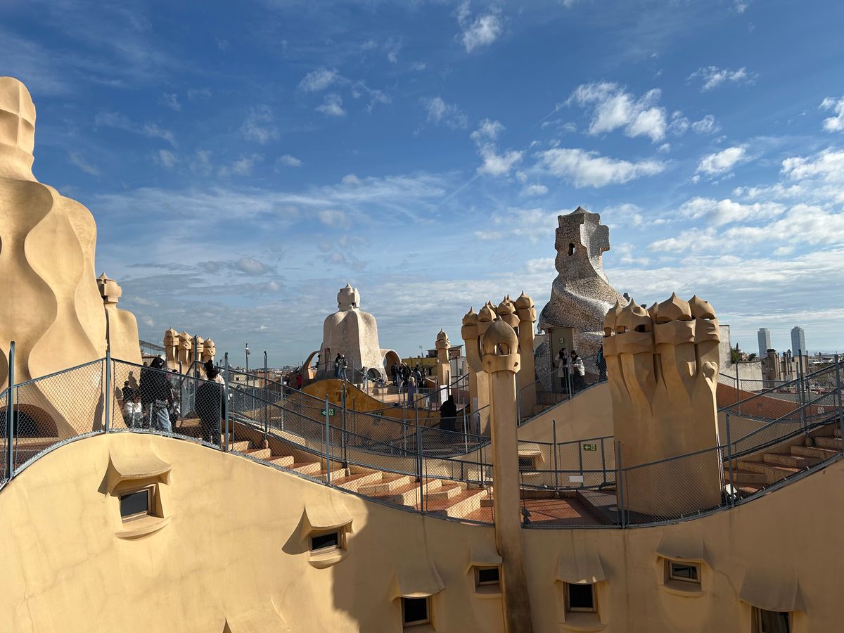 中に入ってみるととてもきれいで、ガウディの作品のミニチュアっぽいのがたくさん置いてあり、家族とこれみたね、あれもみたねとバルセロナ観光の最後にカサミラをみれてとてもよかったです。やはり屋上に感動しました、天候も晴れて、なおよかったです。