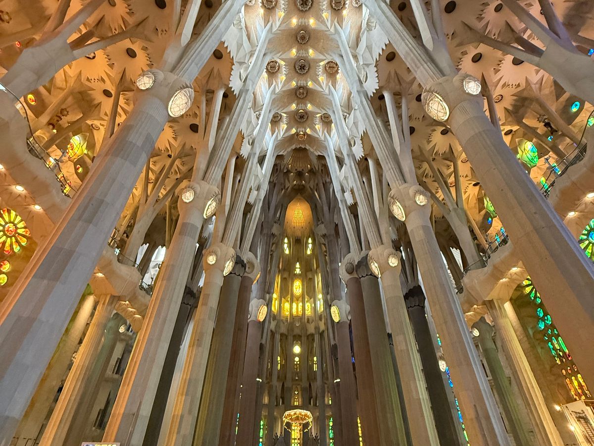 写真では何度も見ていたのに、実際は全くの別物。内部に入った瞬間、光の色に包まれる感覚が忘れられません。バルセロナに行くなら外せない場所だと実感しました。