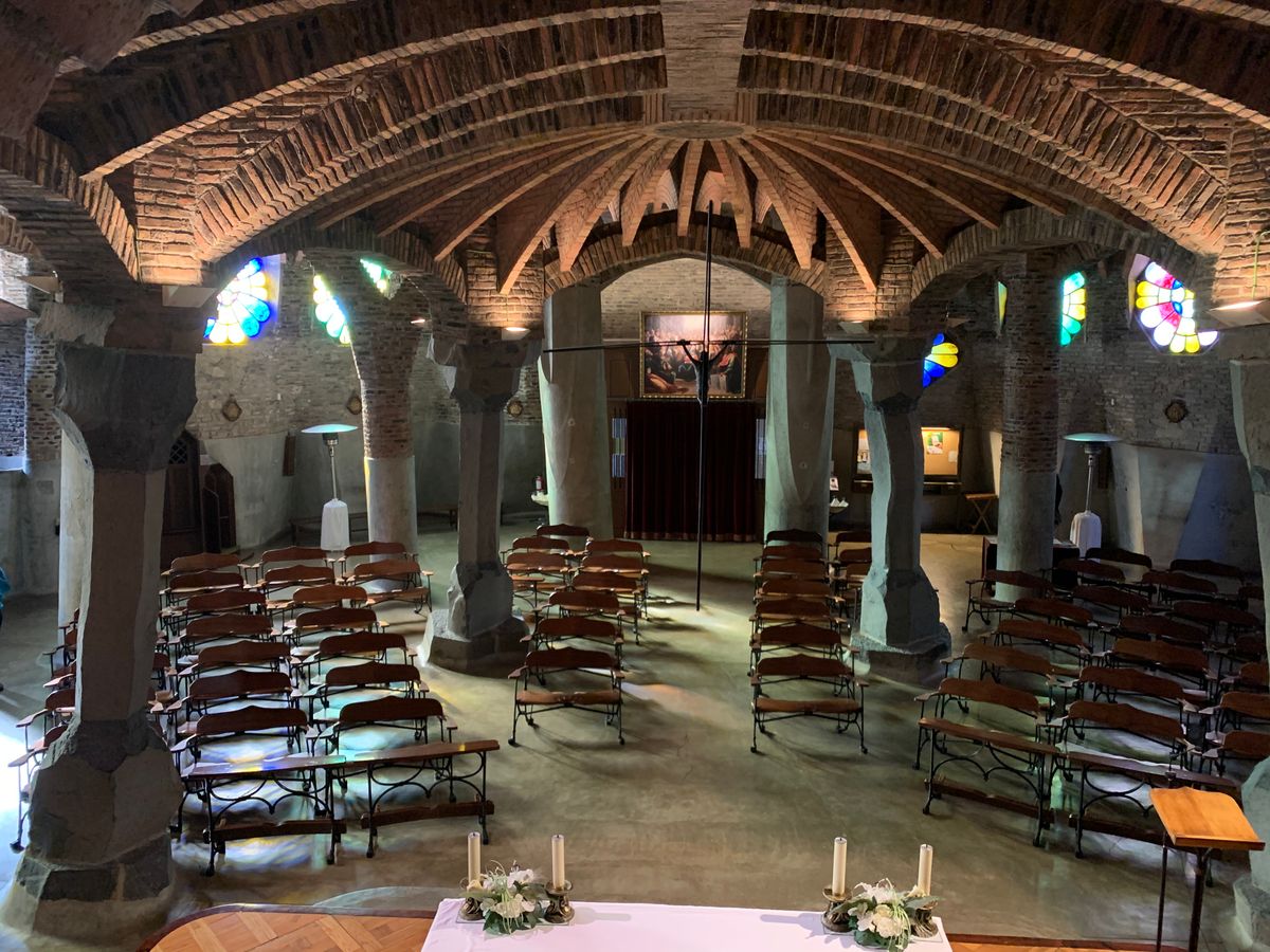 コロニア・グエル教会のオープン前にコロニア・グエルの街中を散策し、オープンと同時に教会に入ったので、まだ誰もいない中ゆっくりと見て回り、写真を撮ることができました。