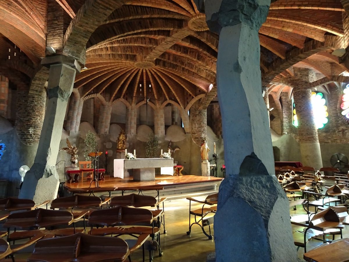 コロニアグエルではまだ誰もいない時間に存分に見学でき、その美しさに心を奪われました。ガウディの作った椅子に触れることもでき、感動しました。