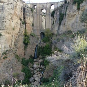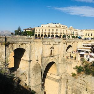 その中でもやはりアンダルシアの断崖絶壁にある天空の街のロンダには感動しました。海抜739メートルの岩盤の上にある白い街です。18世紀に34年もかかり完成したヌエボ橋は旧市街と新市街を結びます。その高さ98メートルの橋からは雄大な山並みと緑の大地が見渡せます。