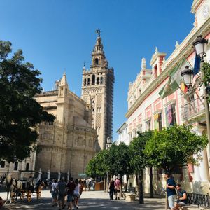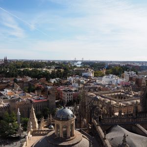 4日目。セビリアへ向け出発。途中断崖の村、ロンダへ立ち寄る。コロンブスの墓や巨大なパイプオルガン、黄金の祭壇などを有するセビリア大聖堂は、圧巻の一言。写真や文章で説明するのは不可能との思いを抱く。広い聖堂内はガイドの方が見どころを重点的に案内してくれ、効率よく回れた。隣接するヒラルダの塔は100mほどの高さがあり、ほとんどが階段ではなくスロープを登って行く為、多少、楽に感じたが、運動不足の私達には厳しかった。しかし、てっぺんからは、セビリアの街を一望出来るのでお勧め。