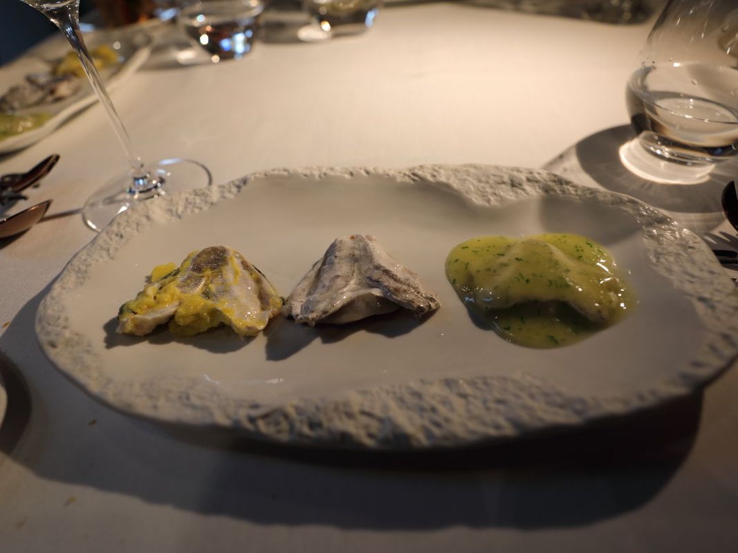 ゲタリアのレストランが13:00開店のためビルバオのホテルを11:15出発。スペイン語ドライバーとのことでしたがジョンさんは簡単な英語で会話が可能だったので特に問題はありませんでした。あいにくの小雨と強風でスマイヤの景色は十分は楽しめませんでしたが、天気ばかりはどうにもなりません。ゲタリアのレストランはミシュランの一つ星のElkanoを予約してもらいました。当初WEB予約画面では満席でしたが、Discovery Basqueの沼山さんが電話で予約して席を確保してくれました。予約の名前が沼山さんの名前だったので多少の混乱はありましたが特に問題なく席につくことができました。ハーフサイズの魚のスープ、Kokotxas(メルルーサの顎肉の料理)、ロブスターのマリネ、Turbot(イシビラメ)をアラカルトで注文しましたが、どれもこれもさすがミシュランの一つ星の料理で非常においしい昼食でした。