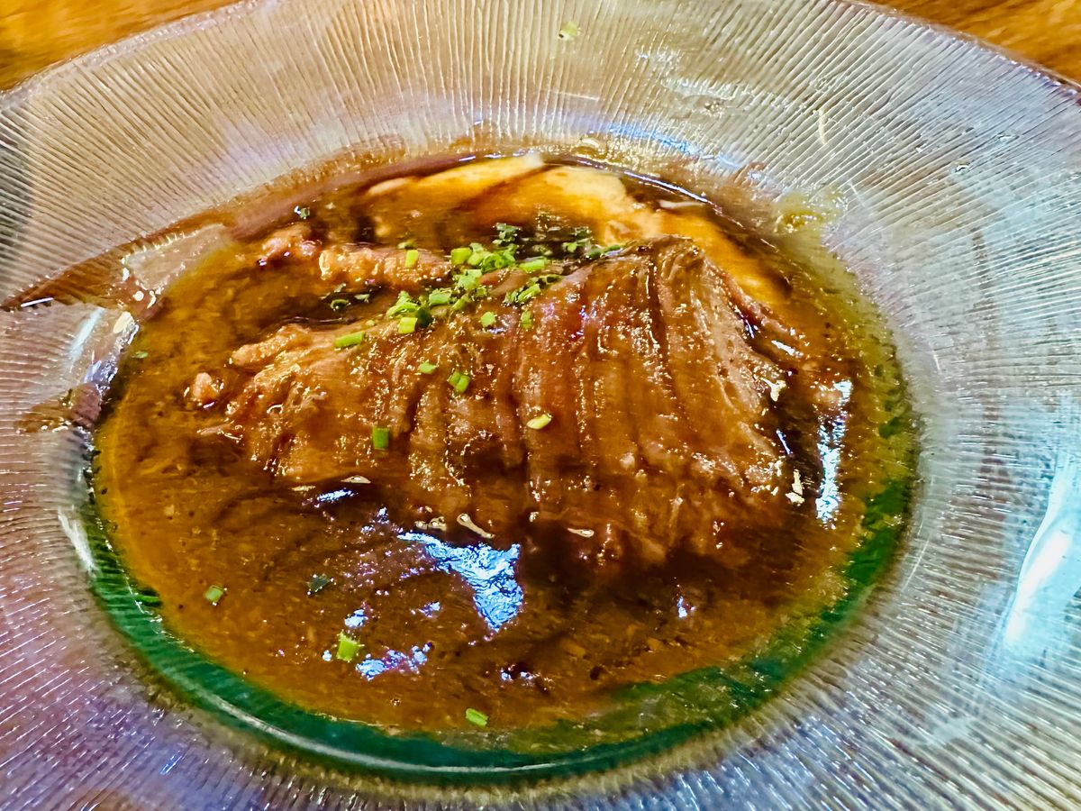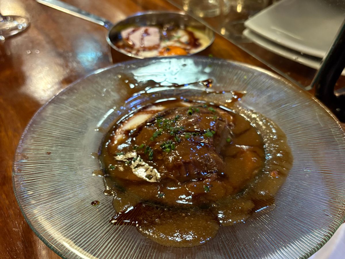 私達に食材を提案し素早くオーダーされました・生ハム・牛肉のほほ肉の煮込み・フォワグラのクリーム煮