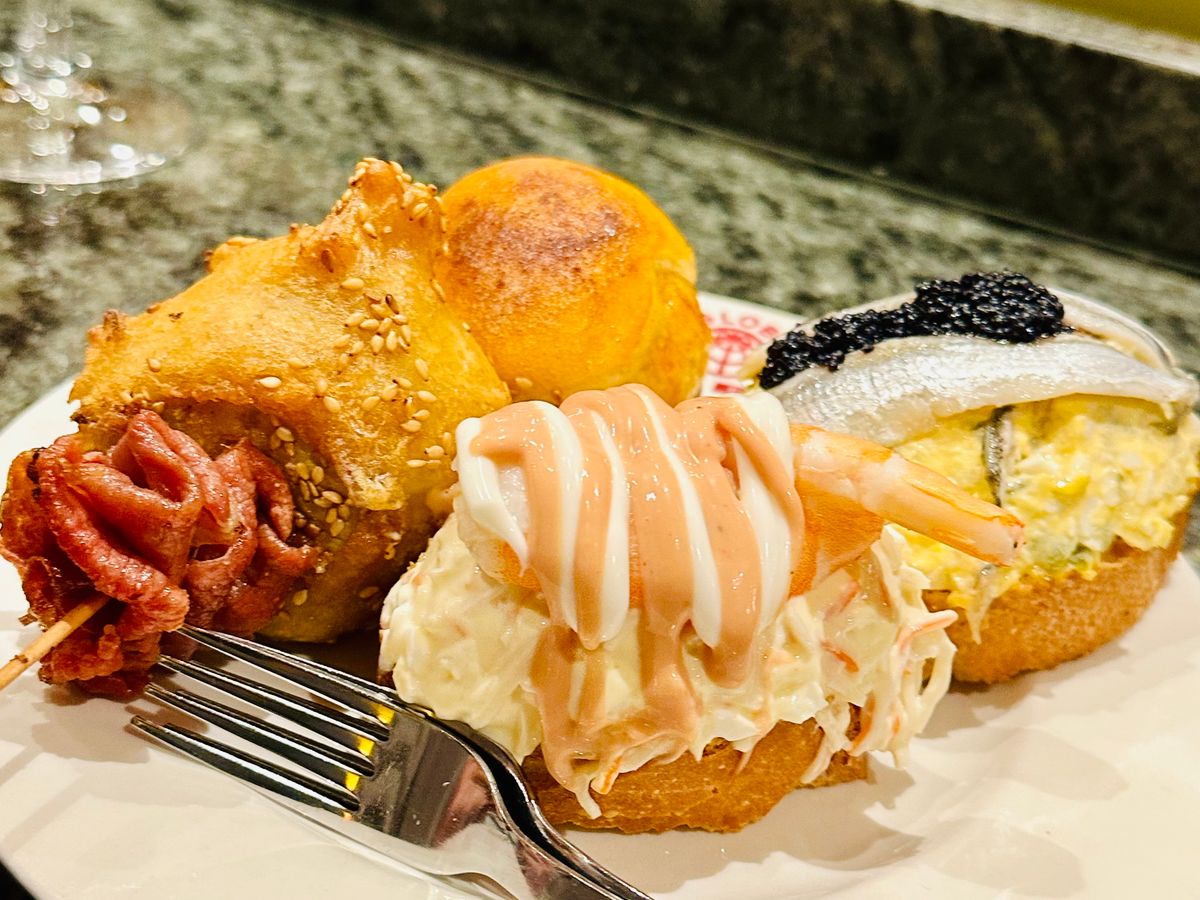 美味しく ボリュームがあって 3店 2品 1杯づつ、2人で2倍👀 50代にはちときつかった。でもおかげさまでバルでの頼み方もわかったし、自分たちでは行かないタイプのお店も試せて楽しかったです。ガイドさんも食べてくれると気兼ねなく食べれるのになと思ったりもしましたが、毎日続けたら 胃拡張になるでしょうから、致し方なしかな。大食に自信のある方におすすめです。ピンチョス天国万歳🙌
