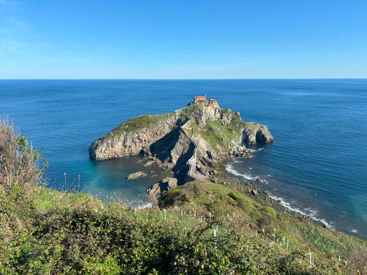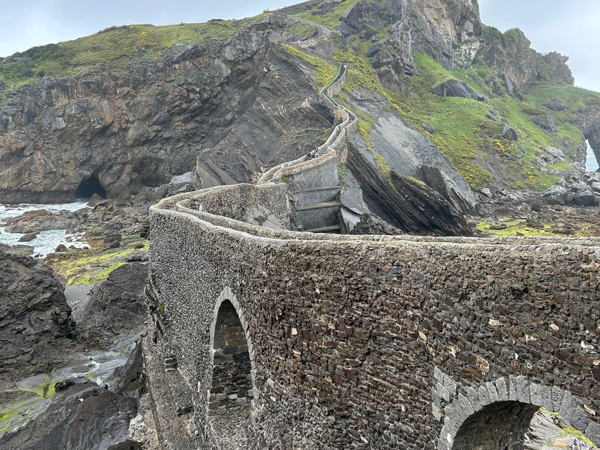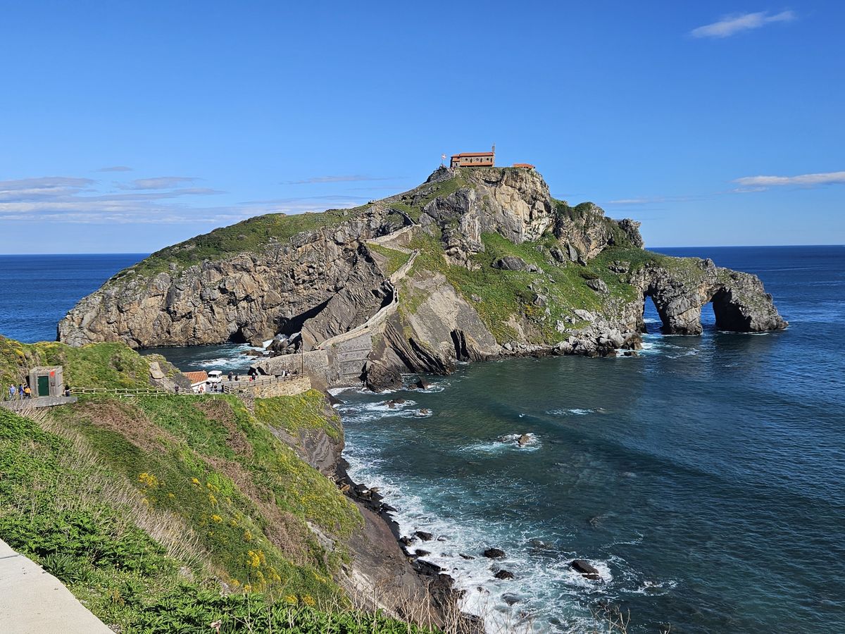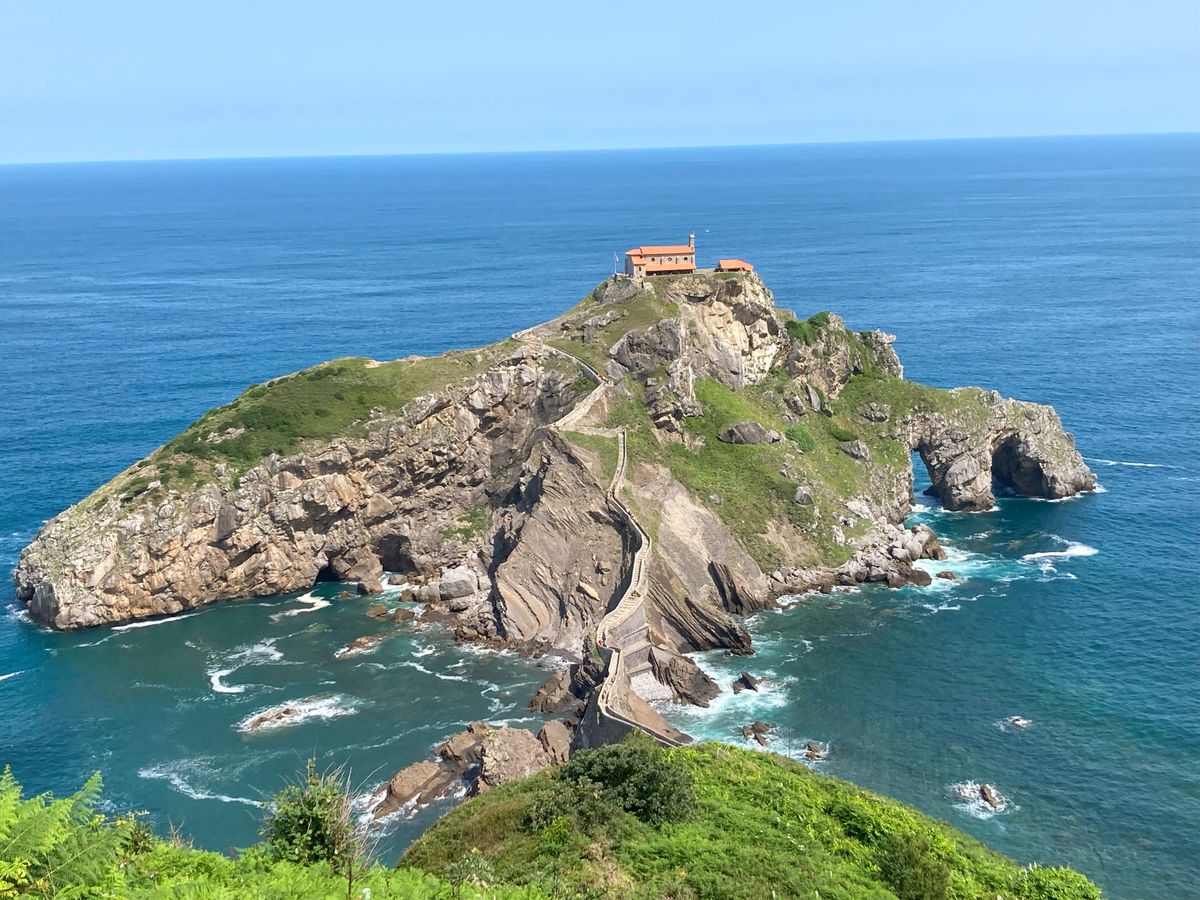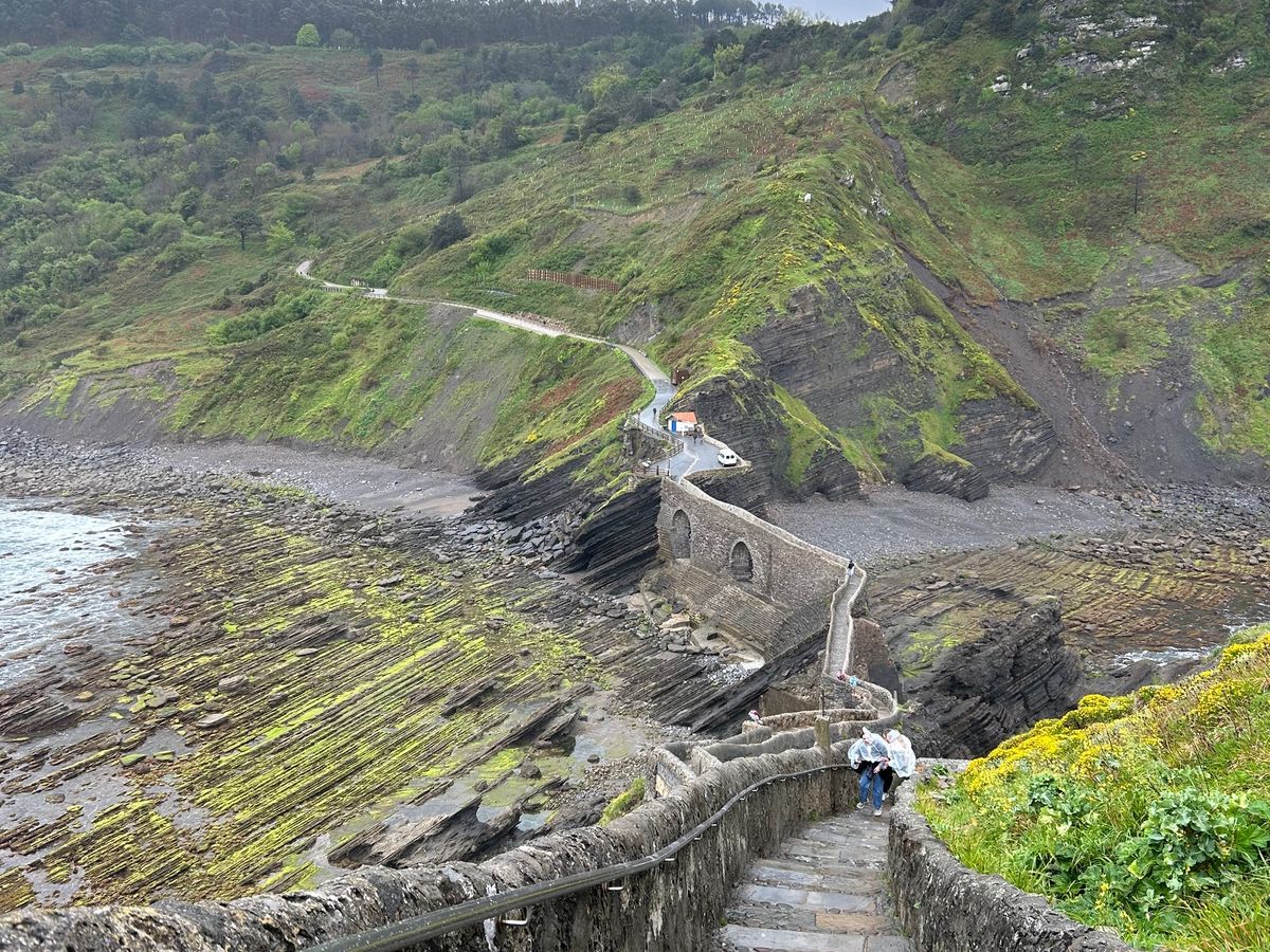 旅行中一番の晴天に恵まれたサン・ファン・デ・ガステルガチェは素朴で神聖な姿が青い空と海に映え、歓迎してくれたようでした。礼拝堂に入れなかったのは残念だったし、帰りの山道では息が上がり汗だくだったけど、たっぷり時間を取っていただき、予定よりも遅れていたのに展望台への寄り道もさせてもらって、達成感と清々しい気持ちでいっぱいでした。