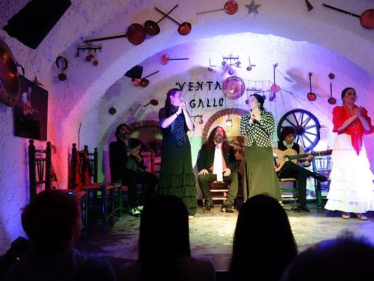 歌い手の女性の魂の奥底から響く深い声や踊りのステップ、情熱的かつもの寂しげなギターが洞窟内に響き、ゲストのノリも最高。