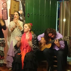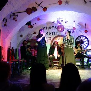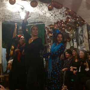 グラナダ滞在中急遽予定が空いたのでお願いしたツアーでしたが、大変満足なショーでした。会場はこじんまりとしていてフラメンコを十分に堪能できます。入ってすぐに自家製?のサングリアを頂けるので、それを楽しみながらフラメンコ鑑賞です。途中で観客もダンスに誘われてみんなで踊ります。(楽しいのでぜひ誘われたら踊ってみてください)