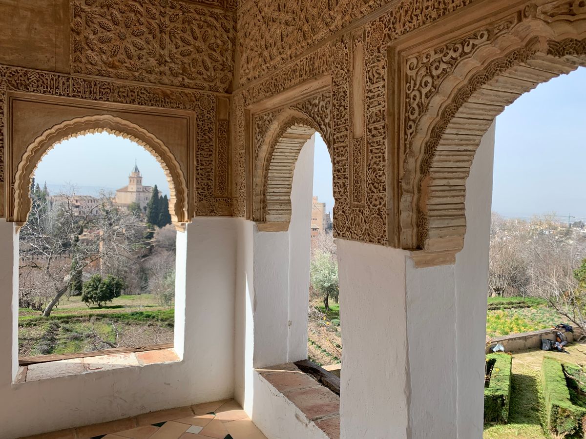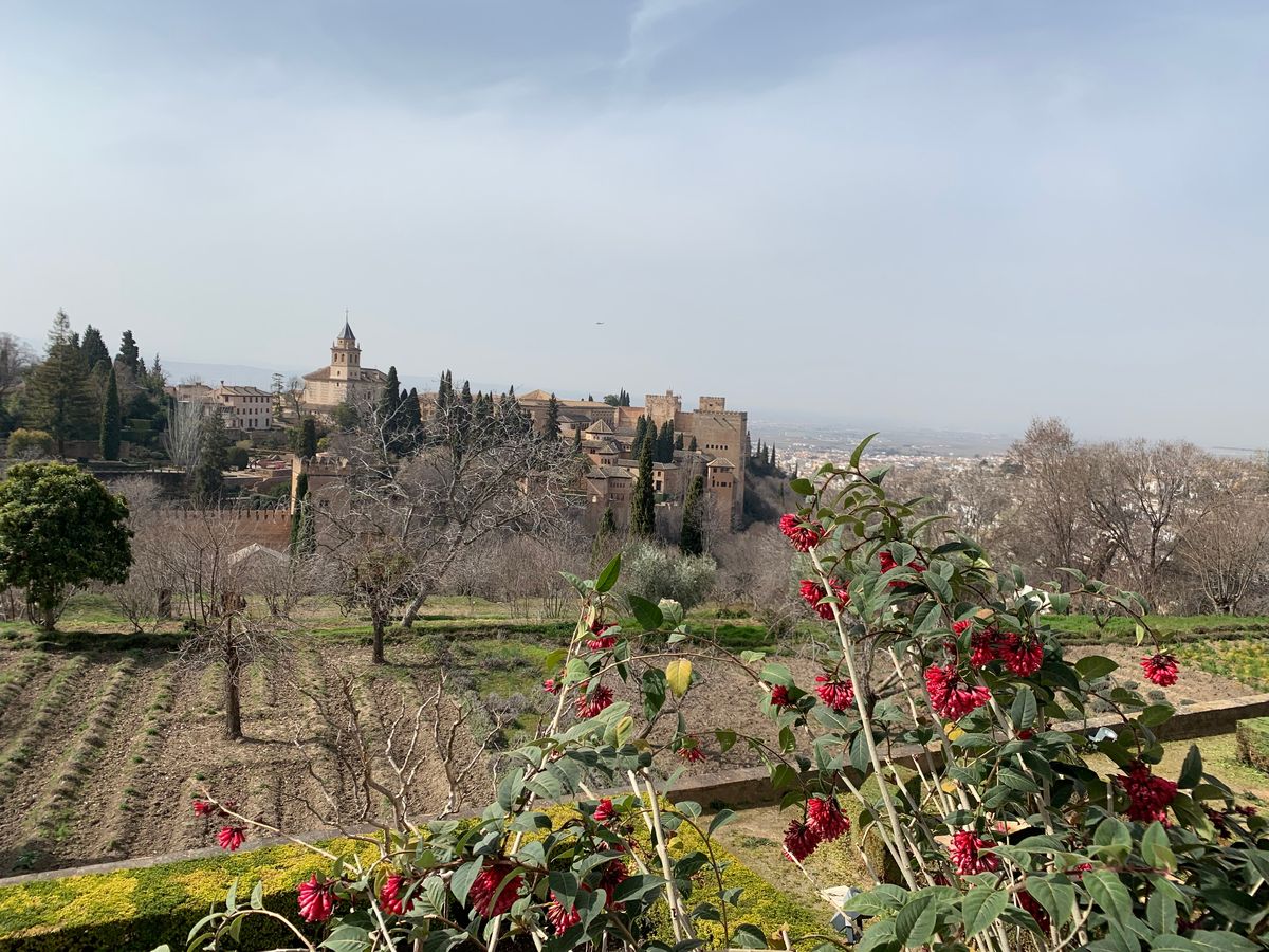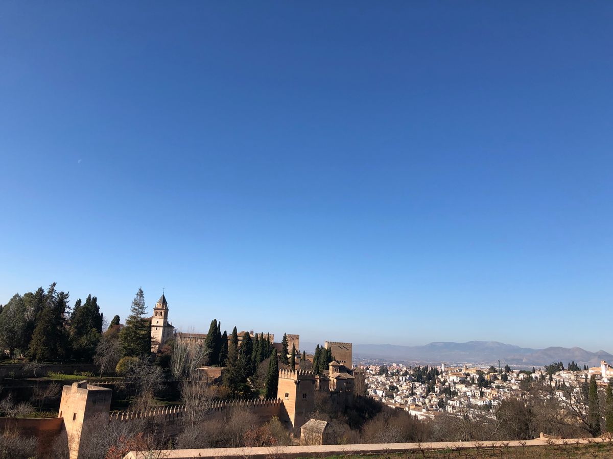 オーディオガイドを受け取った時、アルハンブラ宮殿の開館時間や入口、周り方等教えてくださいました。ナスル宮殿が朝早くて、日が開ける前にバスで着きました。朝早いので人もそこまで多くなく、のんびりできました。帰りは歩いて下ったんですが、結構急な坂道なのにみなさん歩いて登ってきてて、宮殿内でもよく歩くのに、ここで体力使っちゃって大丈夫?って思いました。ほんとによく歩くので、靴底の薄いバレエシューズとかはやめたほうがいいと思います。あと、冬はめちゃくちゃ寒いです、手が悴んでオーディオガイドのボタンが押し辛くて心が折れそうでした笑
