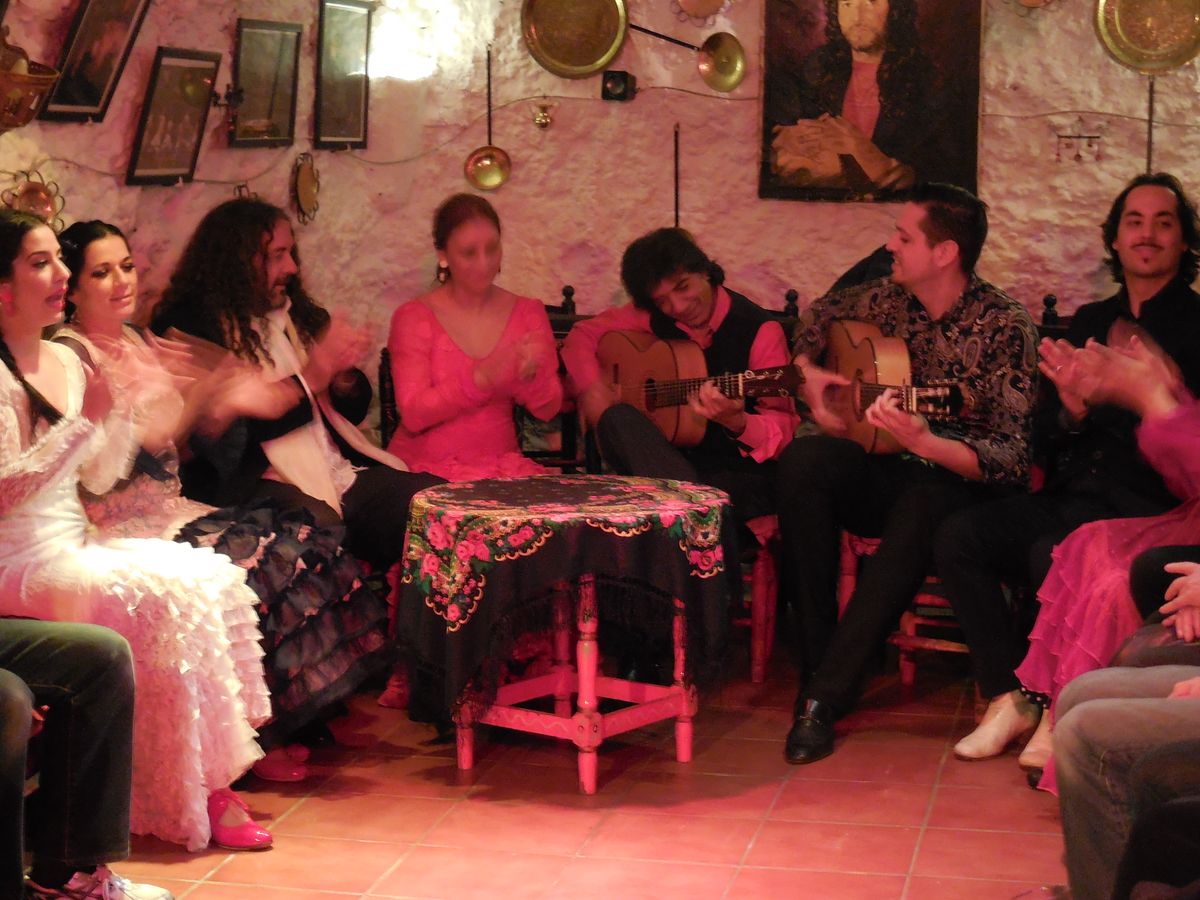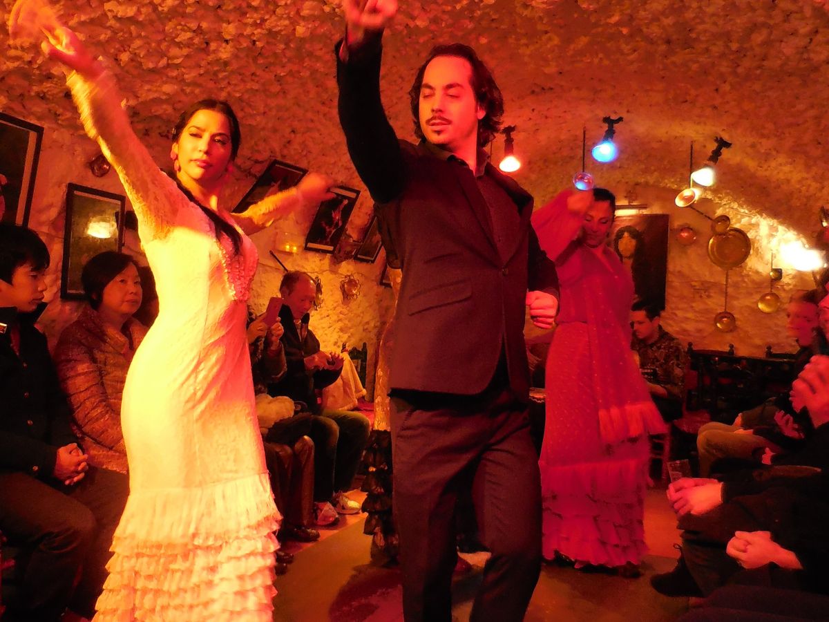 歌い手の女性の魂の奥底から響く深い声や踊りのステップ、情熱的かつもの寂しげなギターが洞窟内に響き、ゲストのノリも最高。