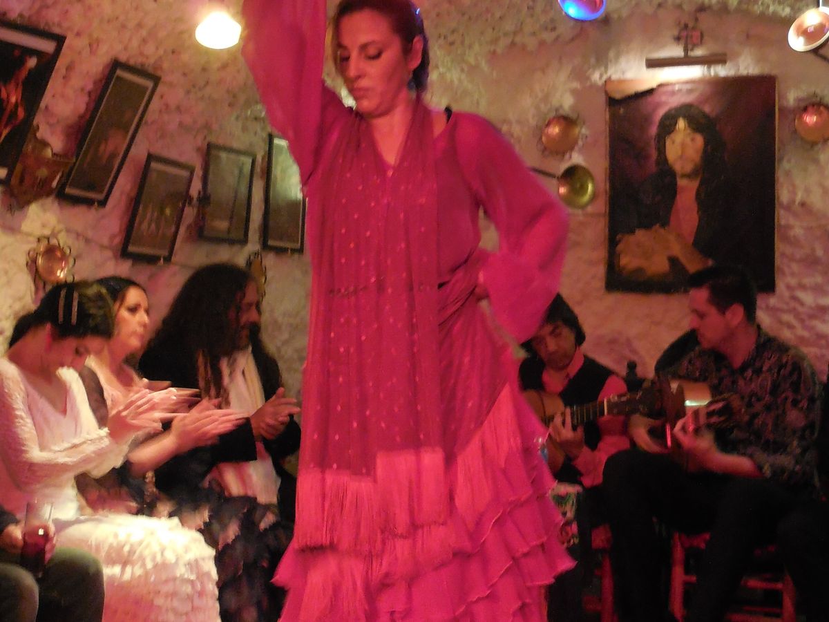 旅行者向けで気軽に生のフラメンコを体験できる。通俗的ではあるが間近(演者のすぐ横)の席で迫力満点。初めてのフラメンコ演奏としては十分満足であった。なお、会場へ向かう途中からのアルバイシン地区の夜景(夕景)もすばらしかった。