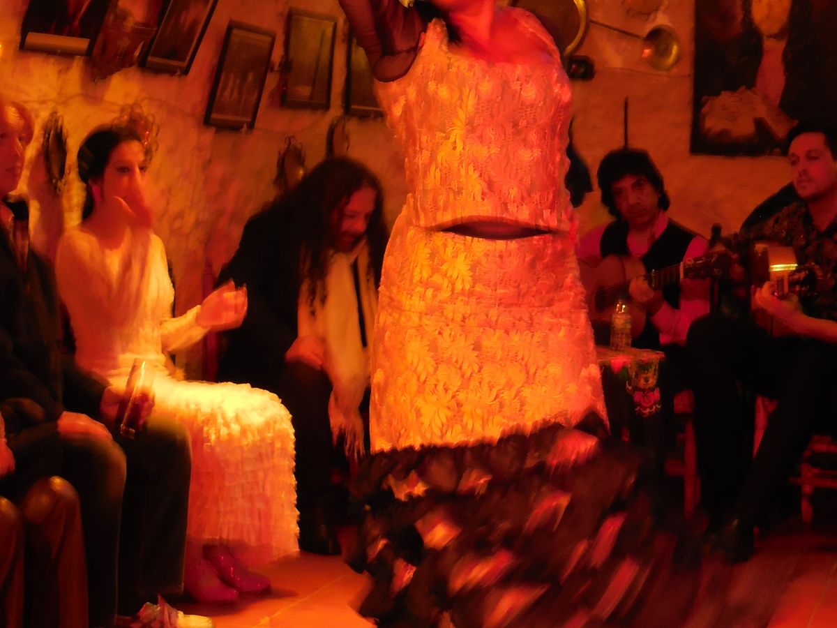 天井の低い空間、そして1メートルにも満たない距離での、4人のダンサーによる入れ代わり立ち代りのフラメンコは迫力でした!何でも他の方から聞いた話では、他のところのはもっとシンプルだとか。ガイドの方の英語も聞きやすく助かりました。参加して良かったです。ただ前日予約の確認が、全く取れず不安になりましたが、VELTRAからの迅速なメールとFAX対応で不安もなくなり、楽しい時間が持てました。ありがとうございました。