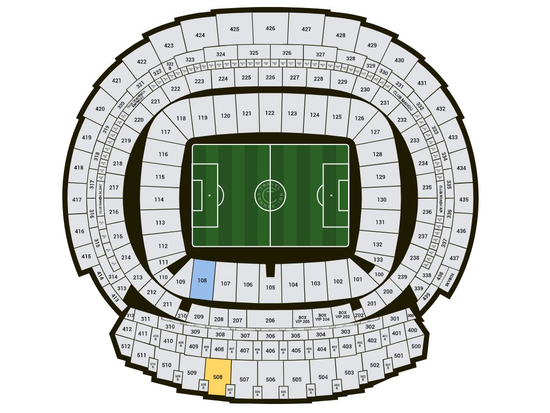 ●ロングサイドアッパースタンド ブロック508(座席表黄色のエリア)または同等座席(ホームチームエリア)