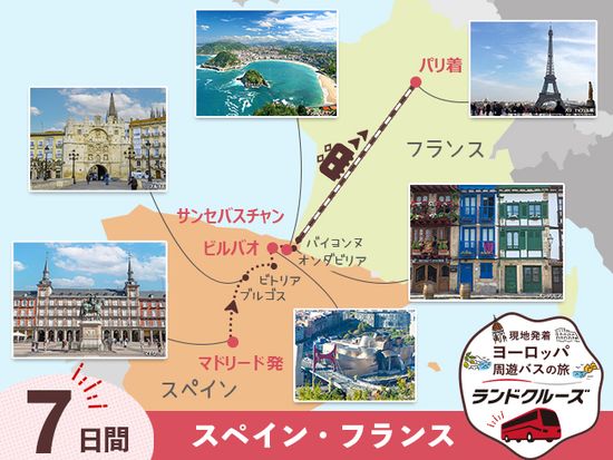 マドリード→ブルゴス→ビトリア→ビルバオ→サン・セバスティアン→オンダリビア→バイヨンヌ→パリ