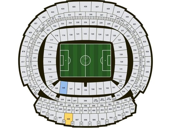 ●ロングサイドアッパースタンド ブロック508(座席表黄色のエリア)または同等座席(ホームチームエリア)