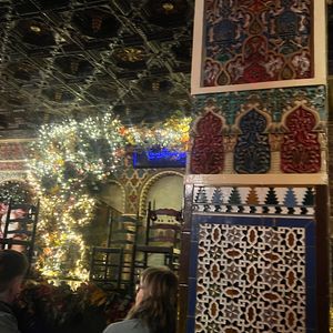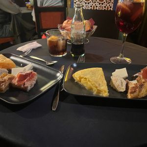 アンダルシア地方に行く時間は無いけど、せっかくスペインに来たのでフラメンコをみたいとなりこちらに。6時半開場とのことで向かうと、すでに行列が。並んでいると35分ぐらいに案内が始まりました。席は払ってるクラスごとで違うみたいで、タパスを頼んでいる自分たちは比較的正面前の方の良い席に。ただ、前から詰めていく方式なので、後から来た人はどんどん席が悪くなっているようでした。自分たちは2列目の端に案内されました。席に着くと、日本語が軽くできる店員さんから「赤ワイン、白ワイン、ビール、サングリア……」と聞かれ、すぐにタパスが運ばれてきました。他のレビューにもありましたが、タパスの量がとにかく多い。タパスって書いてあるのに、なぜかパエリアまで運ばれてくる始末。どうなっているんだ(褒めてる)。味はどれもとにかく美味しく、パエリアはちょっとしょっぱかったですが、本場の感じでした。内装はアルハンブラ宮殿のような雰囲気で、フラメンコが始まるととにかく迫力がすごい。ただ食事の量が多くて、食べて撮って見てととにかく大忙しでした。タパス以上の食事を検討している人はタパスで十分だと思います。とにかく素晴らしい体験ができました。
