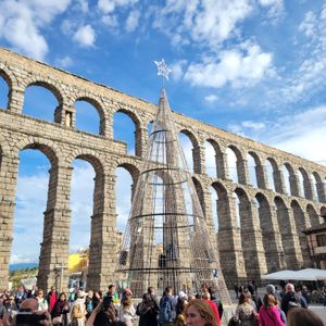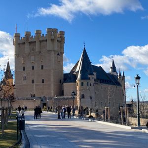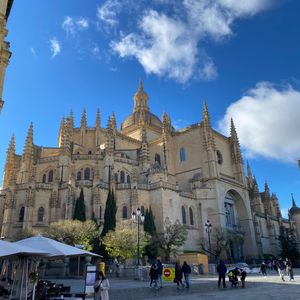 12時過ぎにトレドを離れセゴビアに。すぐに巨大な水道橋が現れ圧倒されました。その後ガイドさんが予約してくれたレストランでセゴビア伝統料理のランチを頂きました。だいたい30ユーロで飲み物(サングリアを注文)、スープと子豚の丸焼き(私のお肉には片足ついてました。外はパリパリ中がジューシーで美味しかったです。)デザートまでついて大満足でした。ランチの後は、また現地のガイドさんの案内で白雪姫のお城まで行きました。お城はとても素敵に思えましたが、とにかく近すぎて全景が見られず残念でした。全景が見られる場所には行かれないとの事だったので、全景が撮影された絵はがきを買って想像しました。少しどこかの工程をつめて、全景撮影できる場所に行きたかったです。