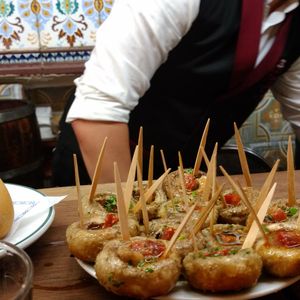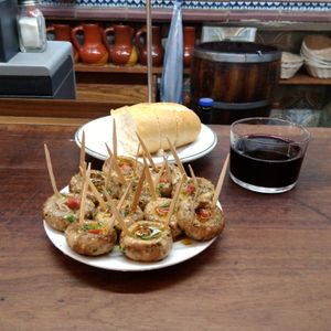 マドリッド旧市街を歩いて回りながら、3件のバルによるツアーでした。2時間半と短い時間でしたが、地元民しか行かないような場所を回り、3件のバルでは、タパス(コロッケ、魚のフライ)、ムール貝、イベリコ豚としし唐辛子のあげたものに、ビール、ワイン、カクテルと程よい量と美味を堪能しました。ガイドをして下さった男性が大変暖かく、そして興味深い話を色々として下さり、とても素晴らしい時間を過ごすことができました。他の方にも是非お勧めしたいです。