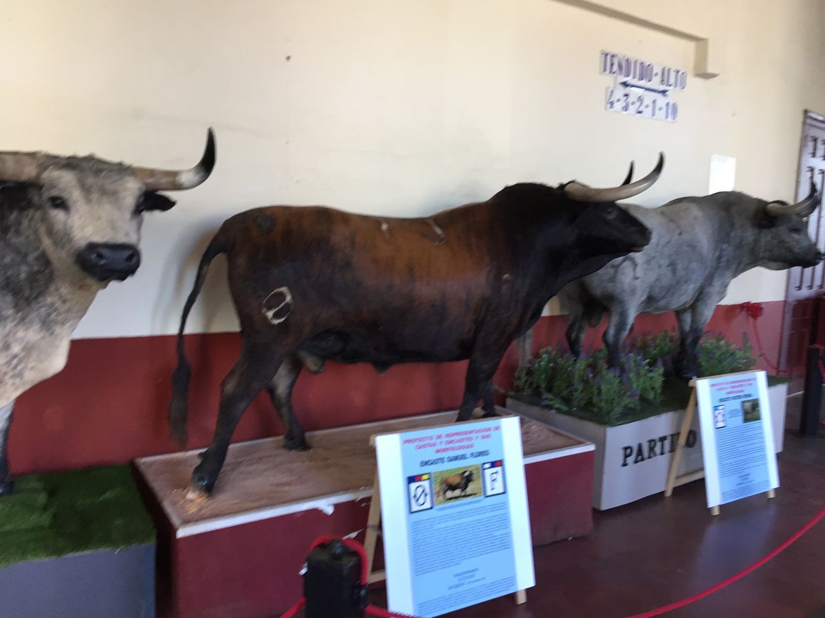 博物館内では闘牛の映像のダイジェストがみられましたし、牛の頭の剥製が沢山あってその大きさに圧倒されました。午前中に見学しましたが、闘牛に出る馬を見にすでに観客の方々が集まっていて雰囲気を感じることが出来ました。