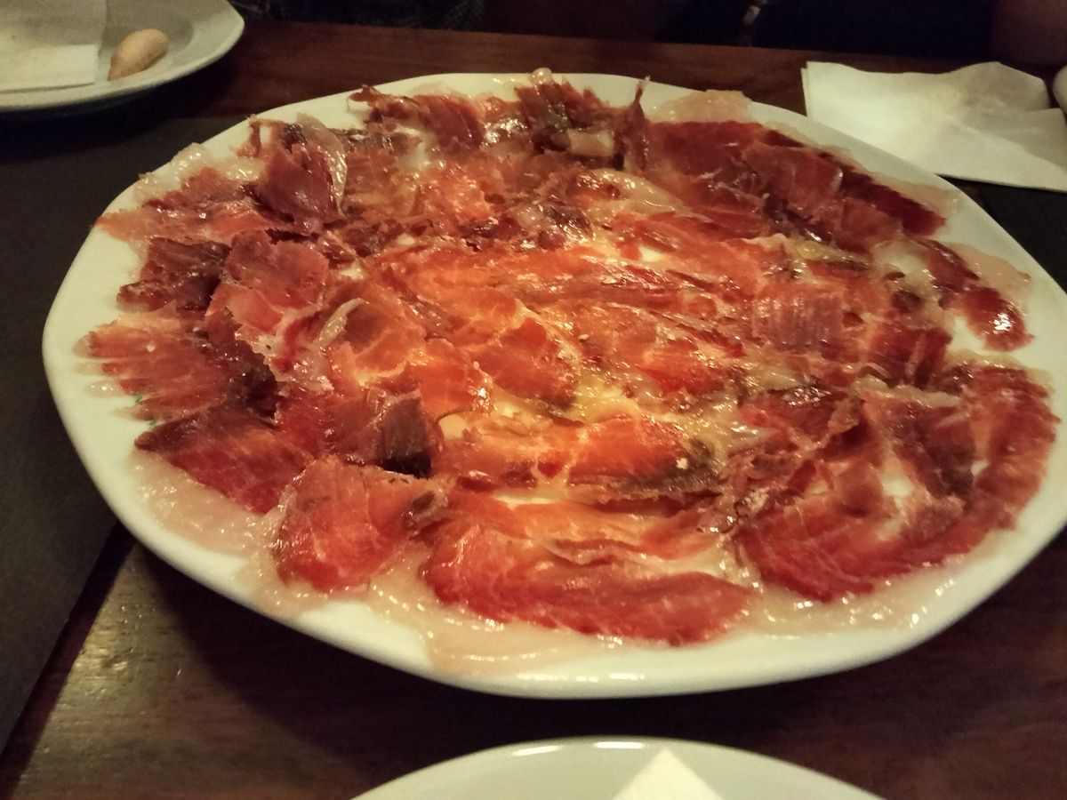 踊り手が2人、男性の迫力ある動きに圧倒されます。ステージが狭く女性ダンサーの衣装の裾がステージ近くの観客の卓上にばっさばっさと降りかかり、客は自分のワイングラスを手で蓋をして支えてた。食事は確かに素晴らしく、特にイベリコ豚の美味しさは特筆もの。しかし料理を運ぶウェイターのワキガ臭が凄かったりと良くも悪くもなかなかに強烈でした。気にしないと言われればそれまでですが、違った意味で異文化に触れた思い。