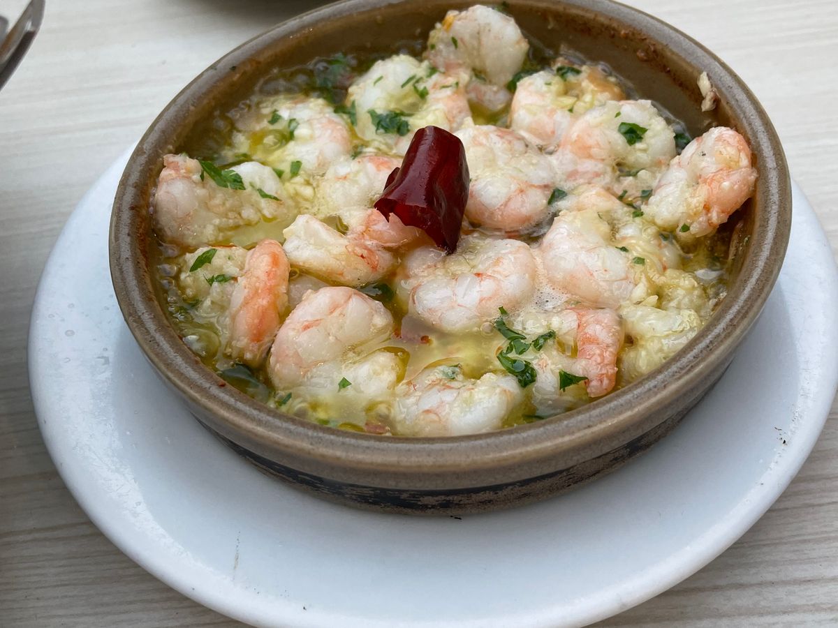お腹空いてたのであっという間に食べてしまいました。2軒目、イベリコ豚の生ハム。今まで食べたことないまろやかさに感動。3軒目、私達のリクエストでアヒージョ。エビたっぷりでほんとに美味しい。その上、初めてお会いしたとは思えないガイドさんの人柄に癒されました。思いがけず素晴らしいスペイン最初の日のイベントとなりました。ありがとうございました。