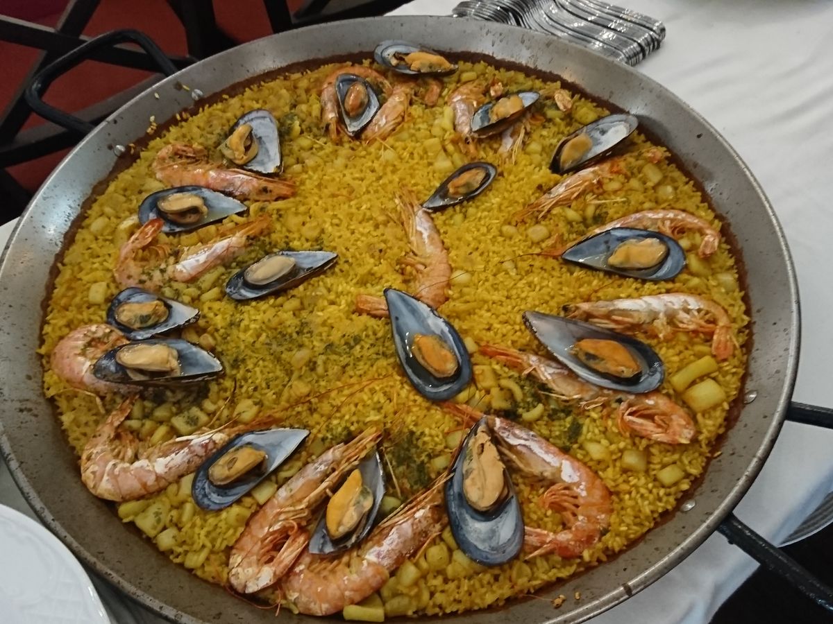 朝は到底食べ尽くせない種類のバイキング、昼と夜は美味しいスペイン料理です。