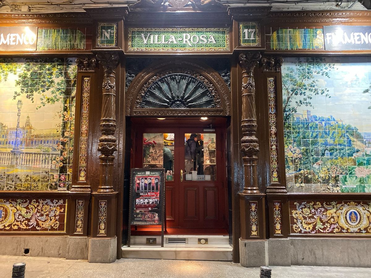 ホテルから地下鉄を2回乗り換えて、Sol駅へ着いた。12/29/2019 20:00 Sol駅周辺は大混雑。それでも地図を片手に、チラチラと街並みを楽しみつつ余裕を持って予約時間前に目的地の「Villa Rosa」へ到着(直接行くと、4分ぐらいで行ける)。