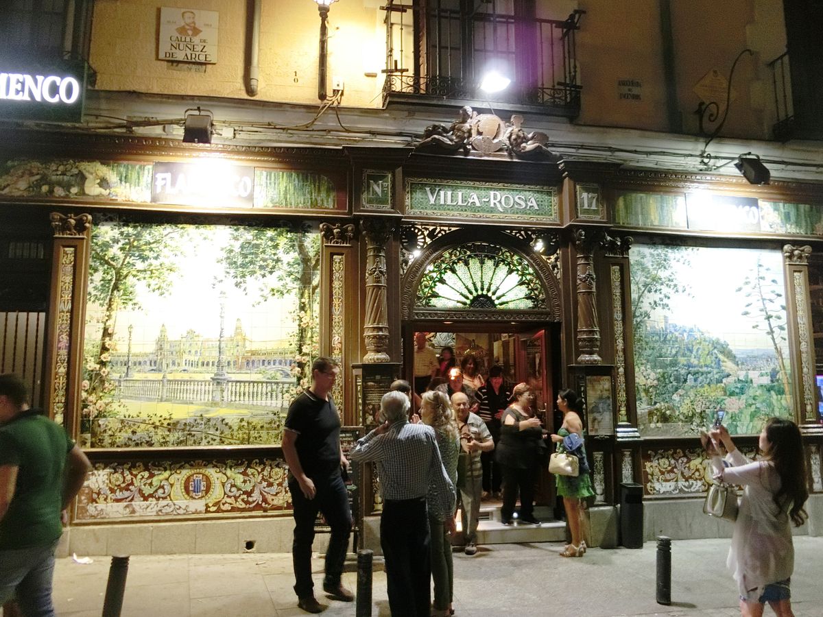正面の席を準備してはくれたが、上記のような雰囲気、料理の対応や質、フラメンコのレベルのどれをとっても耐え難く、お金は捨てたと思って着席後30分で店を後にした。「日本人はフラメンコやワイン、料理の味がわからないと思っているのだろうか」という、思い過ごしと信じたい邪推までしてしまうほどの経験に貴重なスペイン滞在時間を消費したくないと考えた結果だった。入店を待っている際に会話を交わしたイタリア人夫婦に挨拶をして出たが、「俺たちももうすぐ出るよ」と言っていた。