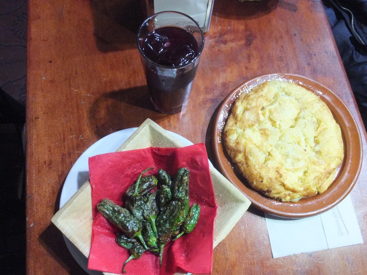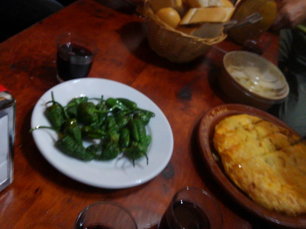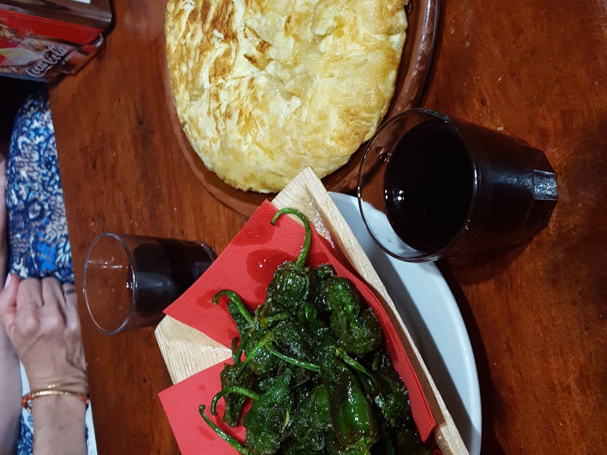 一件目ハム類とカバ、二件目赤ワインとアヒージョ、三件目オムレツ&青唐辛子のオリーブオイル揚げ(ピミエントス・パドロン)とサングリアをいただきました。まるで市内観光のように地理や歴史的なことも交えての説明、いろいろなお店の紹介(お店に行ってショップカード頂く)など、とても楽しく過ごしました。最後にはアイスクリーム。胃の調子が悪い主人にさっぱりしたものを選んでくれるなどとても親切にしていただきました。