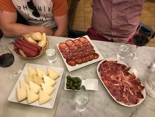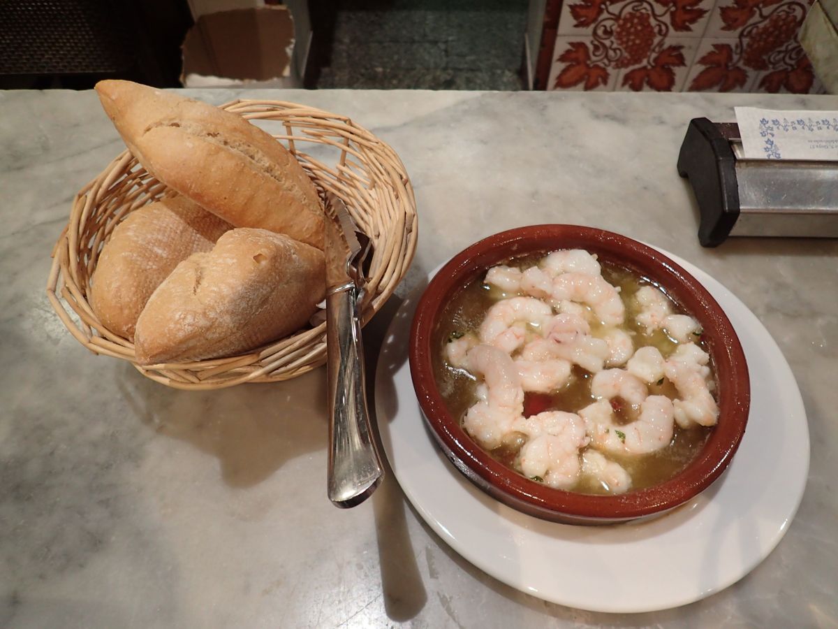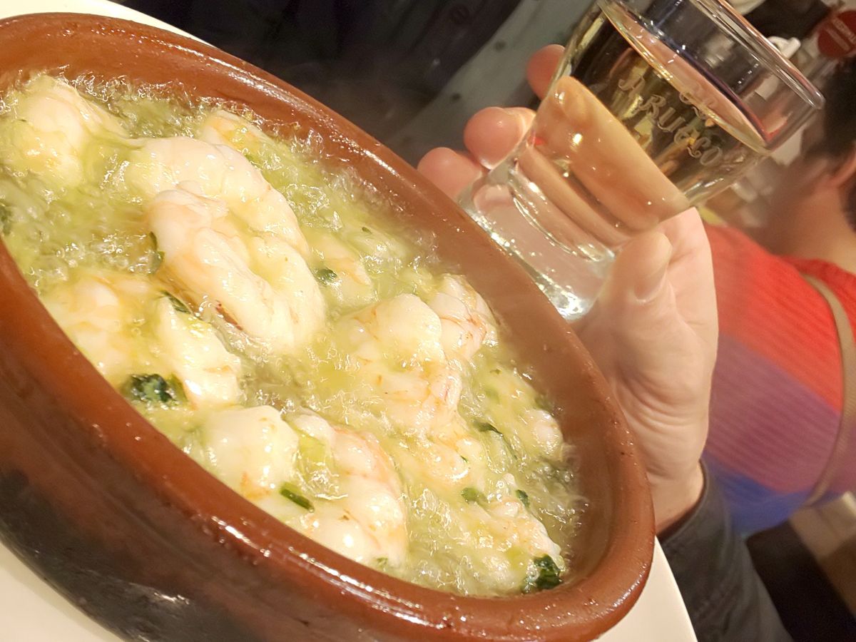 街中にバルがあふれているマドリード。一体どこに入っていいのか迷ってしまいますが、外れのない美味しいところに連れて行ってくださるので、安心してお任せしてました。同行はアメリカ人の2グループ。日本人は我々だけだったので、ちょっと寂しかったです。生ハムもいろいろな種類を選んでくれたし、海老のアヒージョが人気のバルにも行きました。熱々で美味しかったなあ。