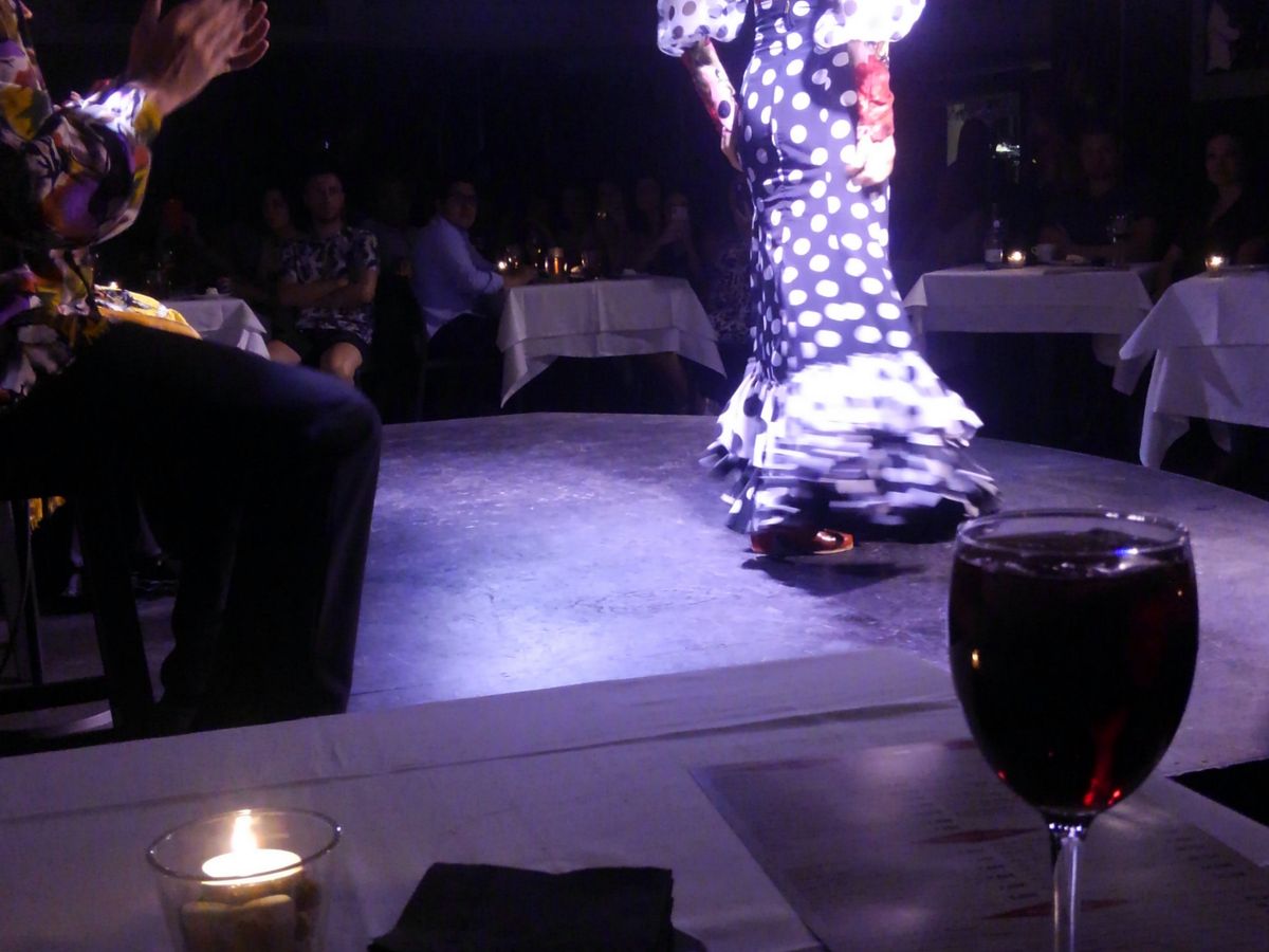 最後にフラメンコ鑑賞です。ステージ横の前から2番目のテーブルで、ダンサーの汗が飛び散る様子が見えたりと、迫力満点のフラメンコを満喫できました。