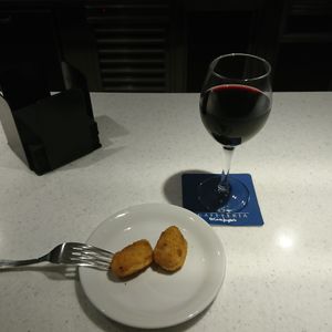 11時30分に、美術館で一旦解散したので、 デパート「エル・コルテ・イングレス」のグラスワイン・ドリンク券をもらっていたので、徒歩でデパートに行き、 7Fのイートインで、赤ワインとコロッケを頂きました。ただ、共にぱっとしない味でしたので、時間がない人は、パスされても良いかもです。